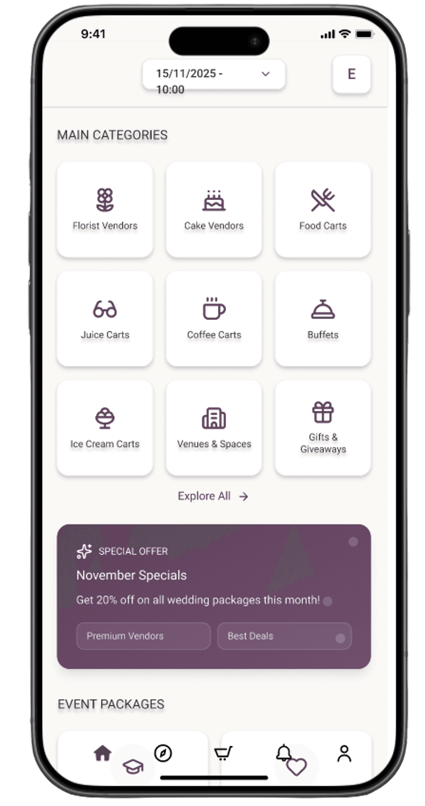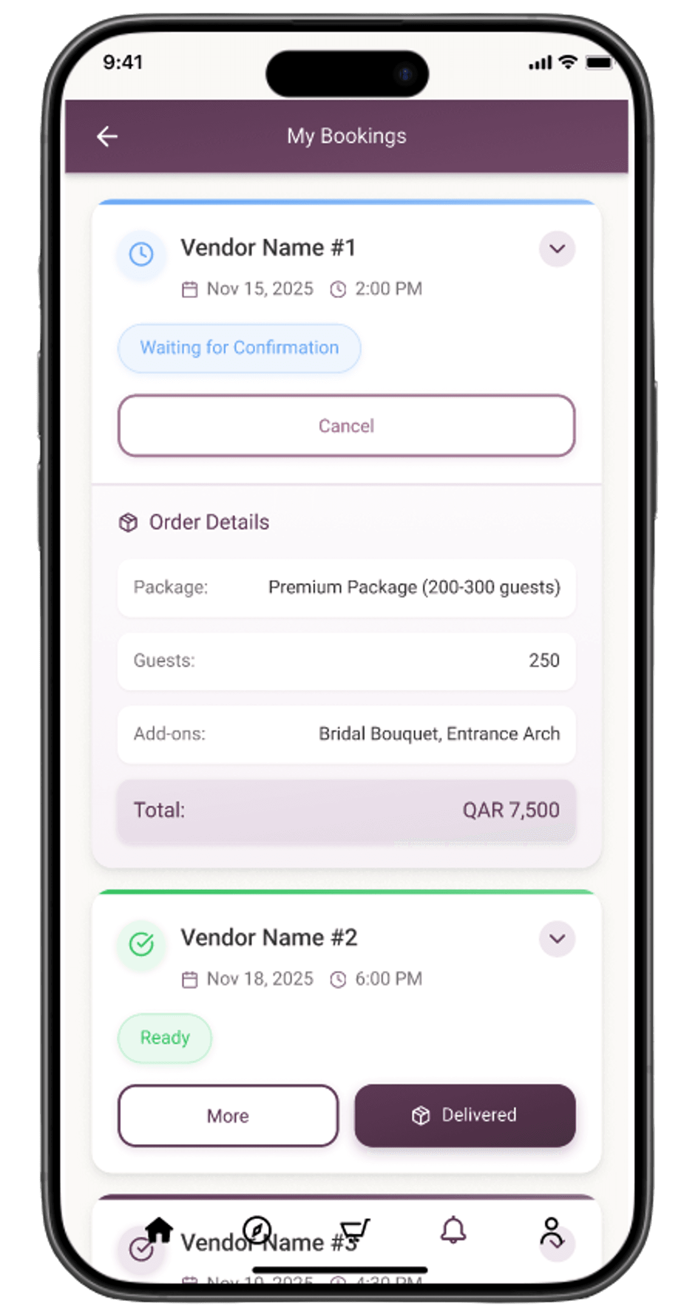 Event planning in Qatar is highly fragmented. Vendors often depend on WhatsApp and Instagram DMs, leading to communication bottlenecks and inefficiency.
